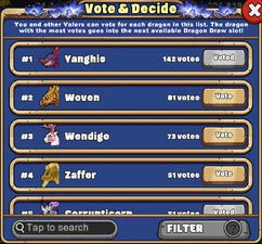 Players can vote from a list of all dragons for which dragon will be next to be in active draws.